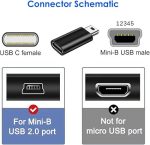 USB C – Mini USB Adaptörüne 2’li Paket, USB C Dişi Mini USB 2.0 Tip-B Erkek Adaptörü, Şarj ve Veri Aktarımı Desteği, Dijital Kamera, MP3 Çalar ve Daha Fazlası ile Uyumlu, Siyah