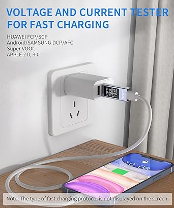 Farklı hızlı şarj protokollerini tanıyın: USB güç ölçer PD2.0/3.0, QC2.0/3.0, FCP’yi destekler. SCP, AFC, PE, DASH VOOC ve Super VOOC protokol şarjı, ancak hızlı şarj protokolünün adı USB test cihazında gösterilmez.