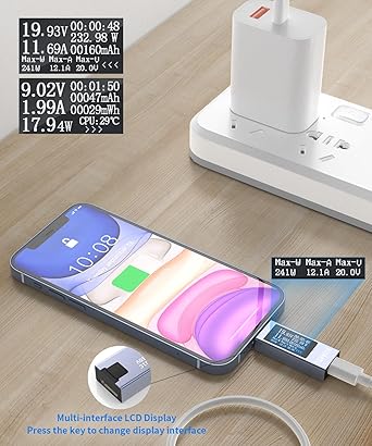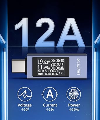 Geniş kullanım alanı: Bu C tipi test cihazı, daha sağlam olan 12 A yüksek akım bağlantısı ile donatılmıştır. Ölçüm akımı: 0-12A; Ölçüm gerilimi: 4V-30V. Geniş test aralığı sayesinde bu USB ölçüm cihazı 3C dijital çevre ürünleri için uygundur ve dijital oyuncular ve elektronik meraklıları için ilk seçimdir.