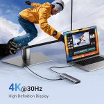 4K UHD HDMI: USB C HDMI Hub, 4K@30Hz’e kadar çözünürlükleri destekler. Ekranınızı yansıtın veya büyütün ve 4K videoyu bir HDTV’ye, projektöre veya monitöre aktarın. Ailenizle daha büyük bir ekranda film keyfi yapmak veya seyirci önünde muhteşem bir sunum yapmak için idealdir.