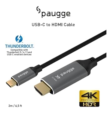 Paugge USB C to HDMI Kablo, DP1.4, HDMI 2.0b, HBR3, 21.6 Gbps Bandwith