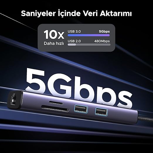 Süper Hızlı Veri Aktarımı ve Kart Okuma: 5Gbps veri aktarım hızına sahip USB 3.0 bağlantı noktası, 4 saniyede 1G dosya aktarımı sağlar.TF ve SD kart okuyucu, daha iyi fotoğraf paylaşım deneyimi için 10 saniye içinde 100 fotoğraf aktarımına olanak tanır.