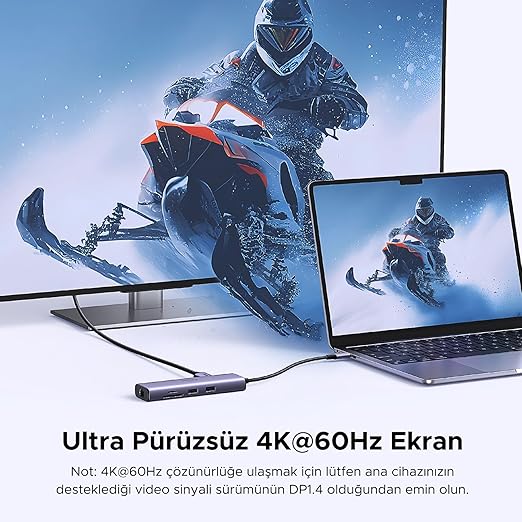 4K 60Hz görsel bir şölen sunar: USB C docking station 4K HDMI ile büyük bir monitörde veya HDTV’de birinci sınıf görüntü kalitesinin keyfini çıkarabilirsiniz. 60Hz’deki yüksek yenileme hızı, videoları ve görüntüleri daha kristal netliğinde ve akıcı bir şekilde aktararak, evinizden çıkmadan sinema kalitesinde yüksek tanımlı görsel şölenin keyfini çıkarmanıza olanak tanır.