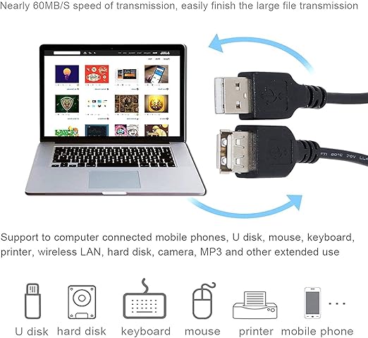 USB 2.0Bir ucu dişi – Bir ucu erkektirparazit önleyici2xAWG24 2xAWG2812Mbps ileetişim hızıUzunluk 1.5 metre