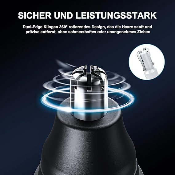 【8000 rpm spinning burun düzeltici】: Bu güçlü burun kılı kesme makinesi ve kulak kılı düzeltici, hipoalerjenik paslanmaz çelik koni ile korunan, dakikada 8.000 devir hızında bir motor içerir, hassas cildinizi kesiklere karşı korur.