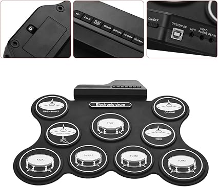Çocuklar veya yeni başlayanların davul seti öğrenme ve uygulaması için özel olarak tasarlanmış portatif rulo elektronik davul seti.