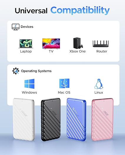 USB3.0 2.5 inç Hdd 6TB Ssd Harici Slim Harddisk Kutusu, , Siyah