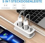 USB’li çoklu priz, 2 bölmeli seyahat çoklu priz, 3 USB şarj cihazı, çalışma masası, şalterli, telefon vb. ile uyumlu, seyahat ve ofis için uzatma kablosu, 1,5 m kablo, beyaz
