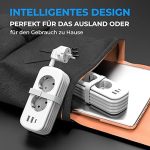 Ultra kompakt 5’i 1 arada çoklu priz – Bu küçük priz altı cihazı aynı anda şarj etmek ve güç sağlamak için ihtiyacınız olan her şeye sahiptir. Dayanıklı, zarif tasarım ve oteller, havaalanları ve evde çok sayıda priz veya dağıtıcı priz şeritleri ve şarj bağlantıları ile uyumludur. Sadece 13,3 cm uzunluğunda, 5,8 cm genişliğinde çoklu priz kolayca el çantasında, sırt çantasında veya bavulda saklanabilir