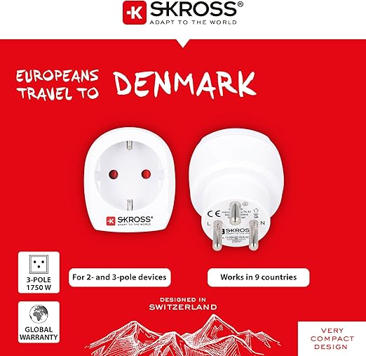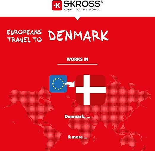 SKROSS USB’li seyahat fişi – Almanya’dan Danimarka’ya – Danimarka’da Schuko veya Euro fişli cihazların kullanımı için seyahat adaptörü