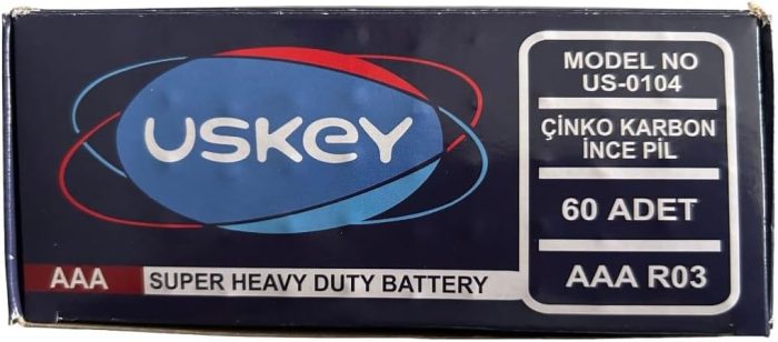 Uskey AAA Pil 60’lı Paket İnce Kalem Pil, Kumanda Pili
