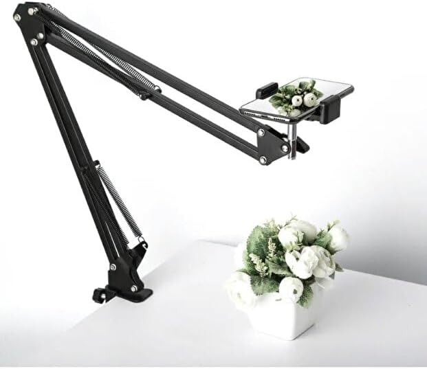 Üst Çekim Masaüstü Telefon Tripodu | Ayarlanabilir Süspansiyon Kol, Metal Kaymaz Taban, Evrensel Telefon Tutucu, Siyah