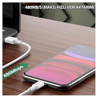 Yüksek Hızlı Veri Aktarımı: Sadece şarj değil, aynı zamanda 480 Mbps’e kadar veri aktarım hızı ile dosya, fotoğraf ve videoları saniyeler içinde aktarabilirsiniz.