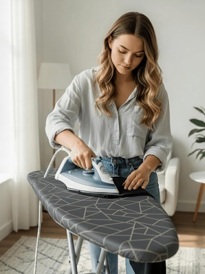 Ütü Masası Kılıfı Ütü Bezi ve Örtüsü Kalın Keçe Dolgulu İpli Yanmaya Dayanıklı Makinede Yıkanabilir Kolay Uyum Ağır Yansıtıcı Görev Ayarlanabilir 3 Katman 50 x 150 cm (Geometrik Gri)