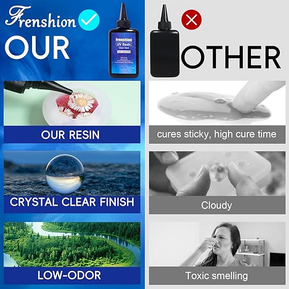 Üstün kalite: Kendiliğinden yayılan ve kendi kendine gaz giderme özelliklerine sahip süper şeffaf UV reçinesi, pürüzsüz, kristal berraklığında, cam gibi yüzeyi sertleştirebilir. Süper net, çizilmez, leke tutmaz ve sararmaya karşı dirençlidir. Sertleşmeden önce hafif bir koku vardır, ancak zararsızdır ve sertleştikten sonra tamamen yok olur