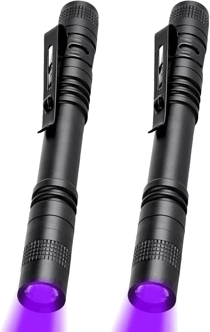 UV Siyah Işık El Feneri, 2 Paket LED 395nm Mini Siyah Kalem Işığı, El Fenerleri Cep Kompakt Meşale, Meşale Işık Dedektörü, Pet İdrar, Yatak Böceği, Akrep, Otel Muayene
