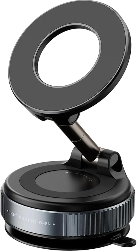 Uyumlu Mekanik Vakumlu Manyetik Araç Telefon Tutucu, 360° Dönebilen, Çoklu Montaj Seçenekli, Siyah