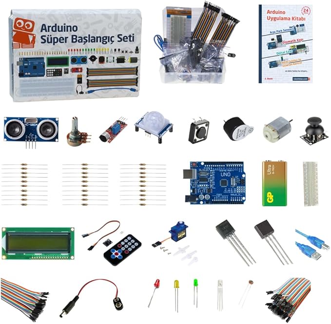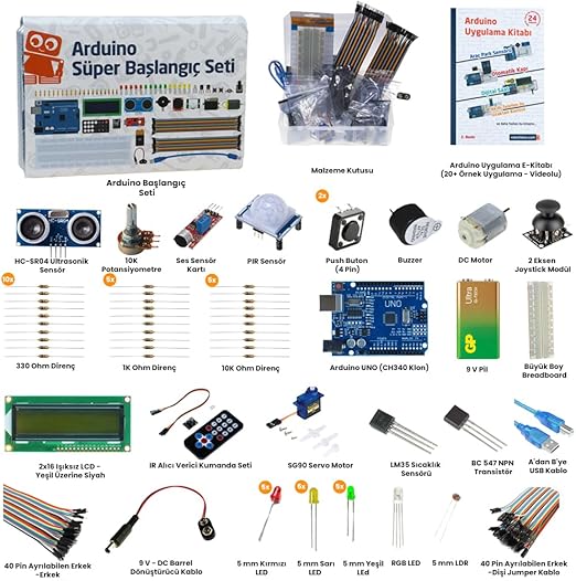 (E-Kitaplı ve Videolu) içerik. Bu kitap Arduino Süper Başlangıç Seti Rev3 ile birlikte QR kod olarak gönderilmekte ve E-Kitap olarak sizlere sunulmaktadır