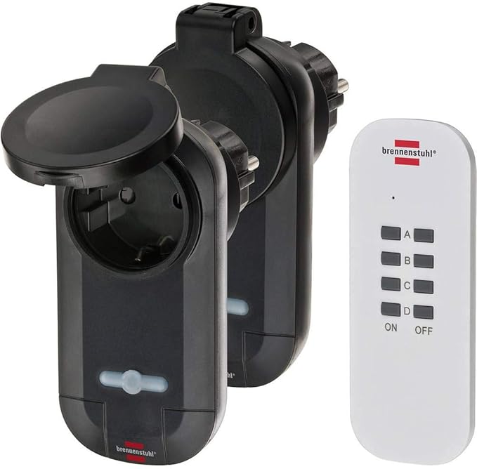 Teslimat kapsamı: 2 x kablosuz şalter alıcısı, IP44 korumalı, siyah renkte, 1 x beyaz el vericisi, 1 x pil tipi CR2032 (3 V) – en iyi kalitede brennenstuhl