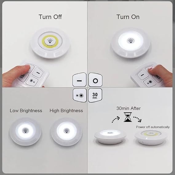 uzaktan kumandalı ve basmalı düğmeli 3 adet kendinden yapışkanlı LED ışık paketi, kablosuz kurulum, iç mekan kullanımı için ideal, beyaz ışık (piller dahil değildir)