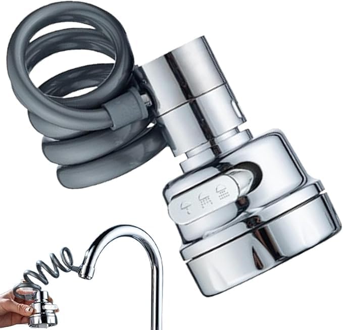 Uzatılabilir Tasarruflu Musluk Başlık – Çek Bırak Ucu 3 Fonksiyonlu, Yeni Nesil Kolay Kullanım, Püskürtücü Eki