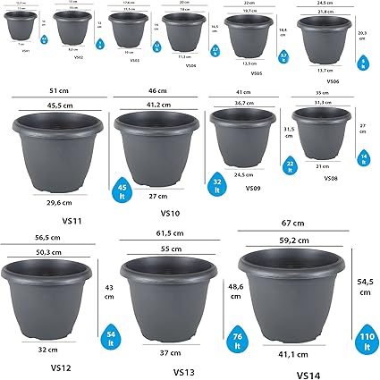 V503 Villa Saksı Set No: 3 1,7 Litre, 17,8 Cm, Antrasit