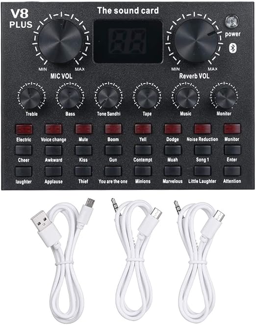 V8 Plus Canlı Ses Kartı o Kablo USB Kablo BT Eşlik Eden Ses Efektleri Evrensel fon Bilgisayar için Siyah