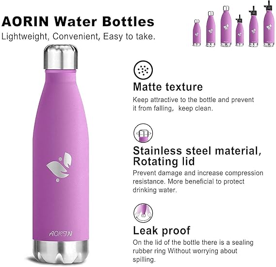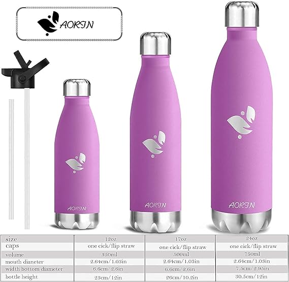 vakum-izole içecek şişesi yüksek kaliteli paslanmaz çelik – 24 saat soğuk ve sıcak tutulması 12 STD. Toz boya çizilmeye karşı hafif temizlenir. 750ml Mor