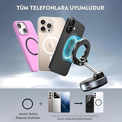 Mıknatıslı Vakumlu Manyetik 360° Dönen Taşınabilir Çok Amaçlı Araç Içi Telefon Tutucu