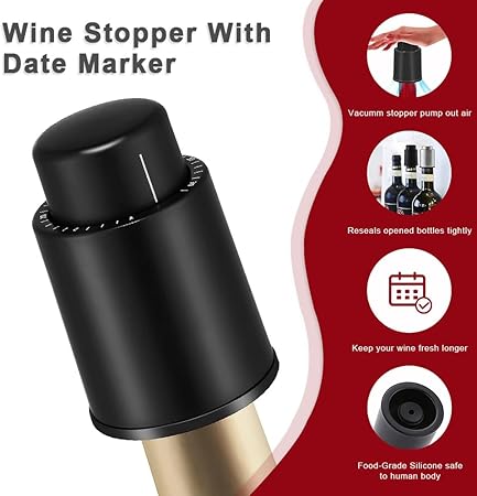 Vakumlu Şarap Tıpası | Şarap Şişesi Hava Geçirmez Koruyucu | Paslanmaz Çelik Şarap Saklama Tıpası | Ev ve Hediyelik İçin Uygun