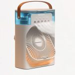 Mini Buharlı Hava Soğutucu, Taşınabilir Portatif Klima, Mobil Sulu Klima, 3 Rüzgar Hızı, 3 Sis Modu, Buzlu Vantilatör 5 Sprey Delikli ile Renkli LED Işıklı Beyaz Renk – HR025 (Beyaz)
