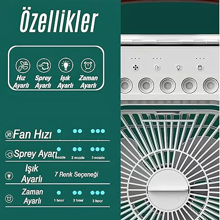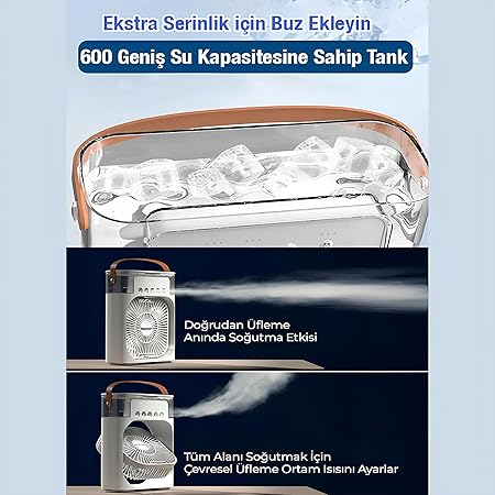 Elle Tutulabilir Taşınabilir Buharlı Vantilatör Mini Fan – 4 Hız Ayarı, Şarjlı, Misting Özelliği, Kompakt ve Hafif Tasarım, Buharlı Vantilatör Fan Asorti Renk