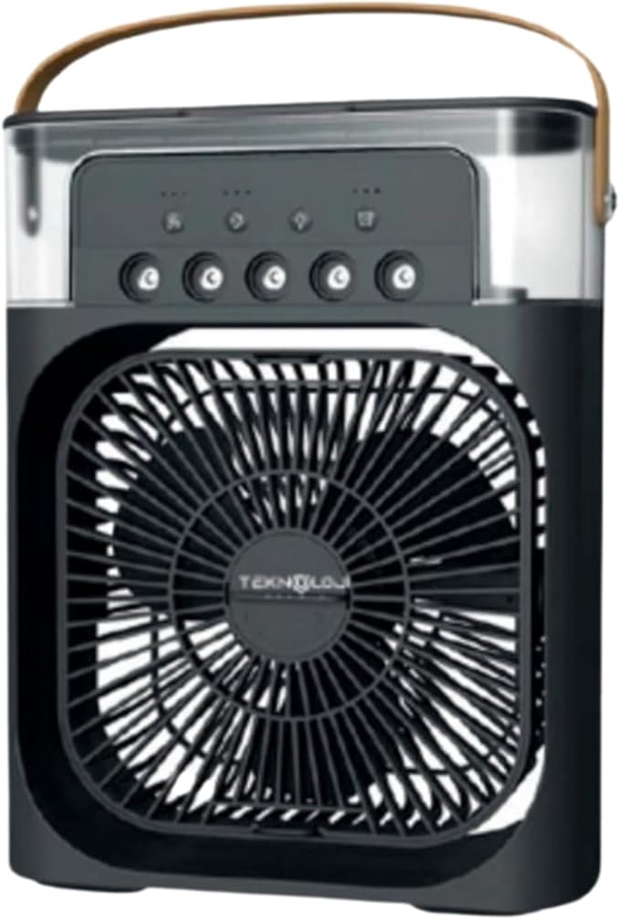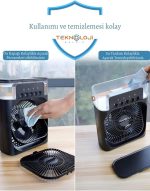 Vantilatör Mini Fan 5 Spreyli Su Püskürtmeli 600 ML Buhar Makinesi Nemlendirici Mini Klima Rgb