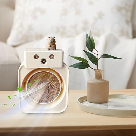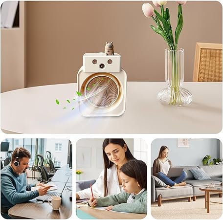 Vantilatör | Taşınabilir Fanlı Nemlendirici 3 Hızlı – USB Şarjlı Soğutuculu Sprey Nemlendirici Araba Kamp Ofis Çadır Plaj Kullanımı için Kompakt Tasarım
