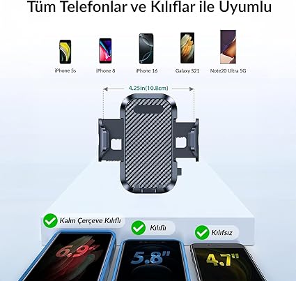 Gelişmiş Tutuş Teknolojisi Esnek telefon tutucu yapısı ve G-Shock teknolojisi sayesinde telefonunuzu güvenle tutar. 360 derece döner başlığı ile telefonunuzu istediğiniz açıda konumlandırabilirsiniz.