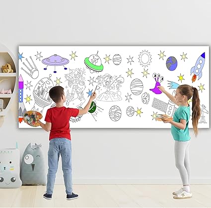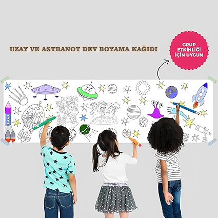 ve Astranot Temalı Dev Boyama Kağıdı 2,5 Metre Rulo Boyama Kağıdı Çocuk Anaokulu ve Kreşler için Aktivite Çocuk Eğitici Boyama