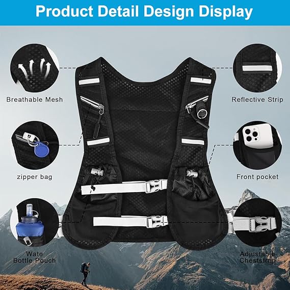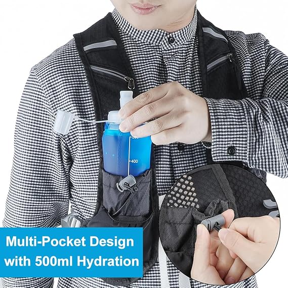 ve erkek için koşu yeleği, koşu yeleği, 500 ml su şişesi, reflektörlü sırt çantası, ayarlanabilir göğüs kemeri, koşu yeleği, koşu, maraton, paravan, yarış ve koşu için