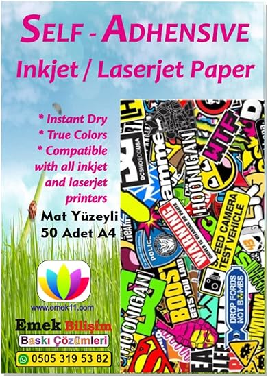 Ve Laser Uyumlu Sticker Güçlü Yapışkanlı 50 Adet A4 Etiket Kağıdı MAT YÜZEYLİ 120gsm