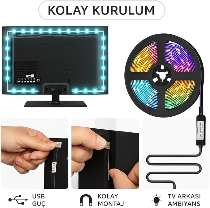 3 Metre Uzunluk – Geniş alanları rahatlıkla aydınlatır, TV veya monitör arkası için idealdir.