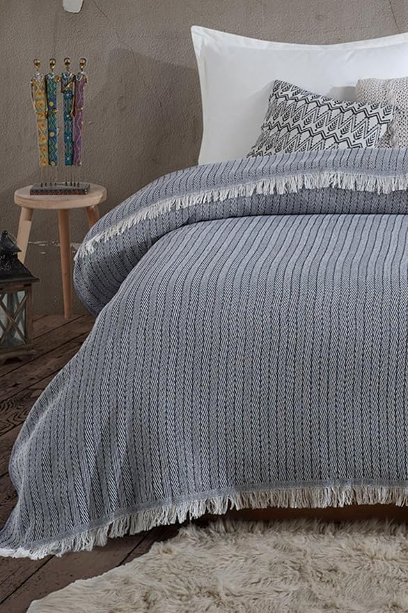 Vera Lacivert Çift Kişilik Pike 200 x 220 cm Yatak Koltuk Örtüsü Pamuklu TV Battaniyesi Lacivert