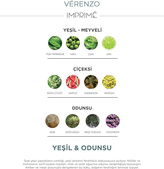 Vérenzo Edp Unisex Parfüm 100 ml | Yeşil Odunsu | Elma, Lime, Mimoza, Karpuz, Sedir, Çam, Misk
