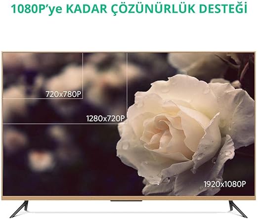 1080 P Yüksek Çözünürlük: VGA – VGA kablosu, LCD ve LED monitörler için tasarlanmış 800×600 (SVGA), 1024×768 (XGA), 1600×1200 (UXGA), 1080P (Full HD), 1920×1200 (WUXGA) çözünürlüğü destekler