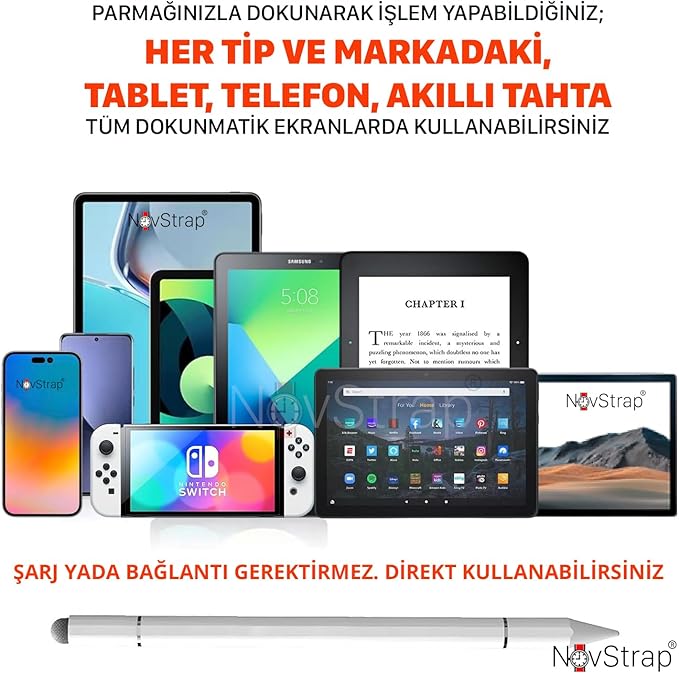 Dokunmatik ekranlı tüm tablet ve telefonlara kullanabilmektedir. Şarj yada bağlantı gerektirmez. Direkt kullanabilirsiniz.