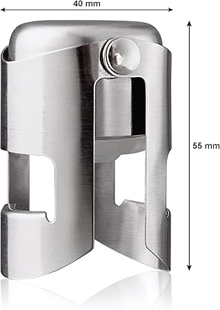 Paslanmaz çelik – Şampanyanızın tadını ve kabarcıklarını bu paslanmaz çelik şampanya stoperi ile koruyun. Şık ve güvenli, şişeye sabitlemek için katlanabilir klipsli.