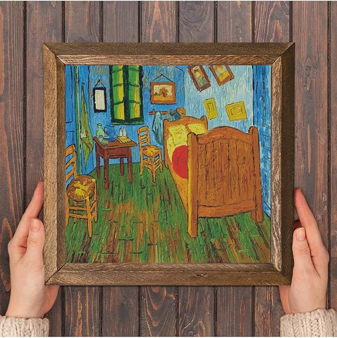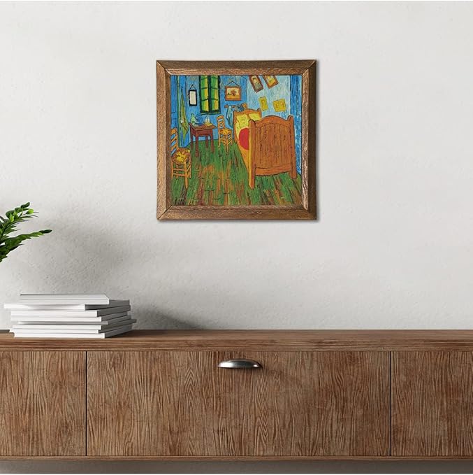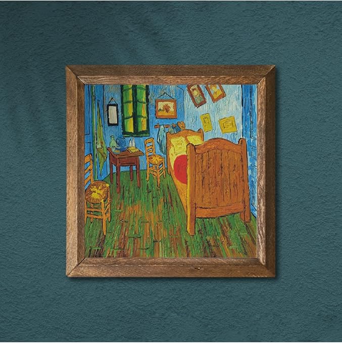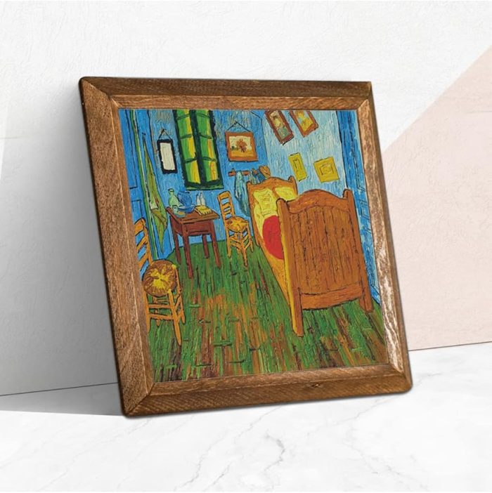 Vincent van Gogh Arles’teki Yatak Odası Taş Duvar Tablosu – Ahşap Çerçeveli Taş Tablo – 25×25 cm – Dekoratif Duvar Sanatı – Modern Ev ve Ofis Duvar Dekoru W1-286
