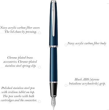 Lacivert Parlak akrilik gövde krom klips halka tepe ve uç