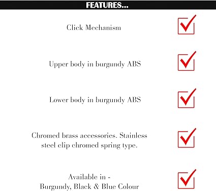 Bordo Akrilik gövde krom klips tepe halka ve uç