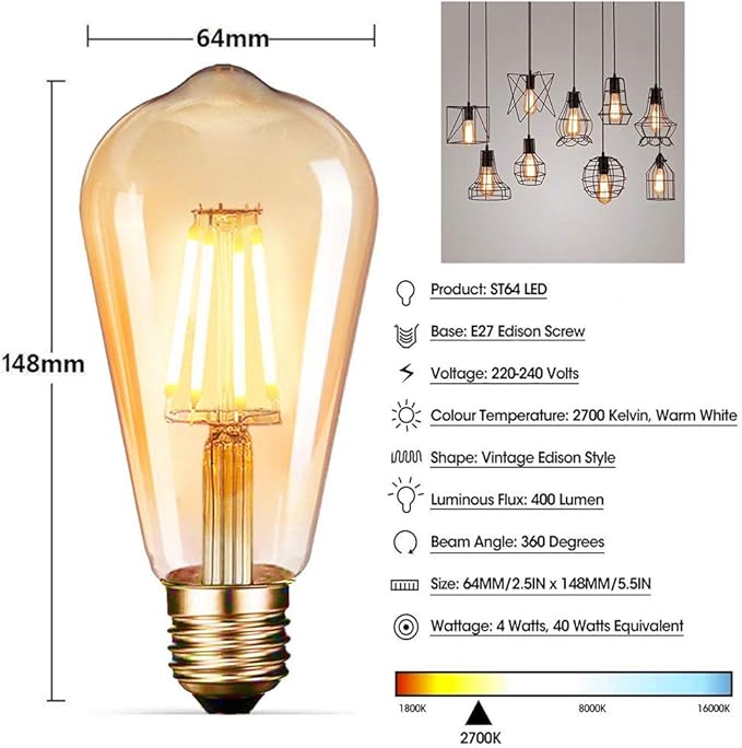 【Yüksek Kaliteli Bileşenler】4 W E27 ampul, yüksek kaliteli tungsten telden üretilmiştir, %100 bakır soket, yüksek geçirgenlikli amber cam, cıva içermez, UV içermez, CE SAA SASO PSE ve RoHS onaylıdır.