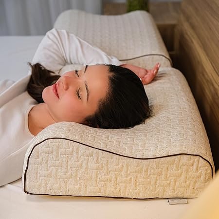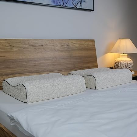 Visco Yastık Boyun Destekli Yastık Visko Atella Doğal Keten Kılıflı 60x40x14-12 cm