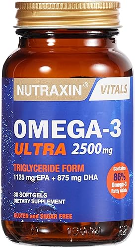 Nutraxin Omega-3 Ultra 2500 mg ; yüksek oranda EPA ve DHA omega-3 yağ asitlerini içeren balık yağıdır. Omega-3 Plus 2500 mg , ağır metal içermemektedir.